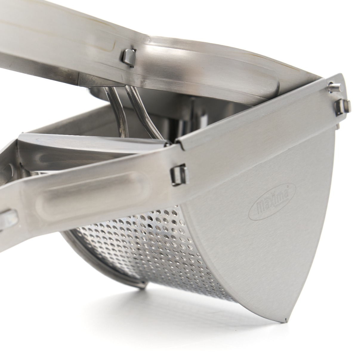 Főzze és hámozza meg a zöldségeket, majd egyszerűen helyezze őket a pogácsaszaggató kamrába. Nyomja össze a hosszú fogantyúkat, és a főtt termék átnyomódik a perforált lemezen, így finom, egyenletes eredményt kap. Gyors és hatékony módja a burgonya vagy a puha zöldségek elektromos áram nélküli feldolgozásának. Kerülje a rostos vagy kemény alapanyagokat, mivel a prés puha, főtt termékekhez készült.