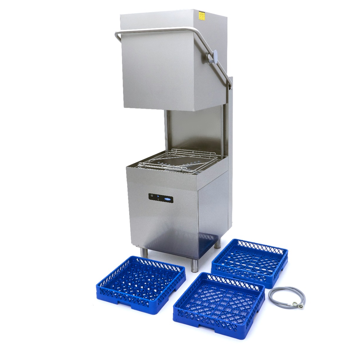 Ez a professzionális átfolyós mosogatógép számos előnnyel jár, többek között azzal a lehetőséggel, hogy rozsdamentes acél mosogatóasztalhoz csatlakoztatható az előöblítéshez. Ez zökkenőmentes munkafolyamatot teremt az előöblítéstől a szárításig. Mind a készülék, mind a mosogatóasztalunk állítható lábakkal rendelkezik, így elérheti az ideális munkamagasságot. Ezzel a beállítással a piszkos edények gyorsan és egyszerűen tisztíthatók. A kezdéshez egyszerűen helyezze az összes edényt a mosogatógép kosarába, és öblítse le őket egy előmosási zuhany segítségével. Ezután tolja át a kosarat a mosogatógépbe. A mosogatóprogram befejezése után csúsztassa a kosarat egy lefolyóasztalra, és hagyja megszáradni az edényeket. Ez a gép sarokbeállításra is alkalmas. Számos tartozékot mellékeltünk, például egy 50 x 50 cm-es pohárkosarat, egy 50 x 50 cm-es tányérkosarat, egy evőeszközkosarat, valamint egy ellátó- és leeresztőtömlőt a készülék vízvezetékhez való csatlakoztatásához. A négy állítható lábnak köszönhetően a magasság is könnyen testre szabható.