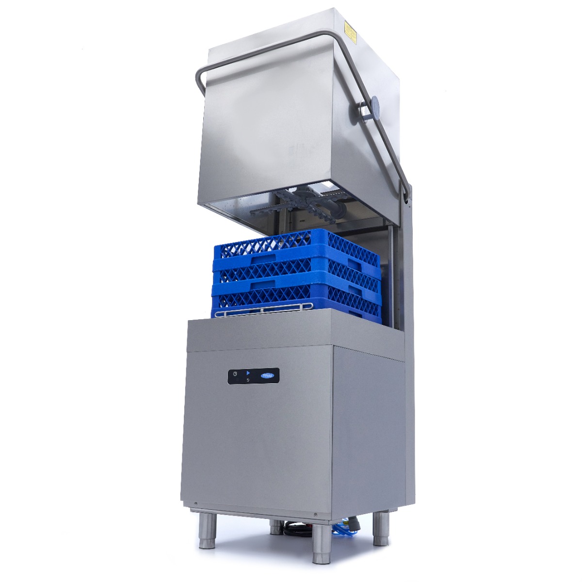 Ez az átjárható mosogatógép teljes egészében rozsdamentes acélból készült, amely nagyon gyorsan és könnyen tisztítható. A sima felületek nedves ruhával letörölhetők. A belső oldalon lévő mosókarok speciális ABS-ből készültek, és egy ronggyal és vízzel tisztíthatók. A mosogatógép öblítővel és szappanpumpával is fel van szerelve.