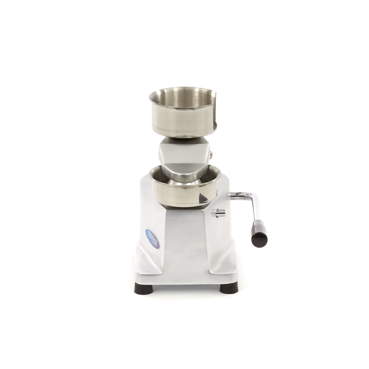 Ez a praktikus és kompakt asztali modell egy karral van felszerelve, és teljesen kézzel működtethető. Ez lehetővé teszi, hogy a hamburgerprést bárhol használhassa a konyhában. A tányér, a fogantyú és a tartók rozsdamentes acélból készültek, és könnyen tisztíthatók. A különálló részek mosogatógépben tisztíthatók. Kérjük, győződjön meg róla, hogy minden alkatrész száraz, mielőtt újra összeszereli a hamburgerprést. A gumilábak extra stabilitást biztosítanak. A hamburgerprés 500 adaglapot tartalmaz.