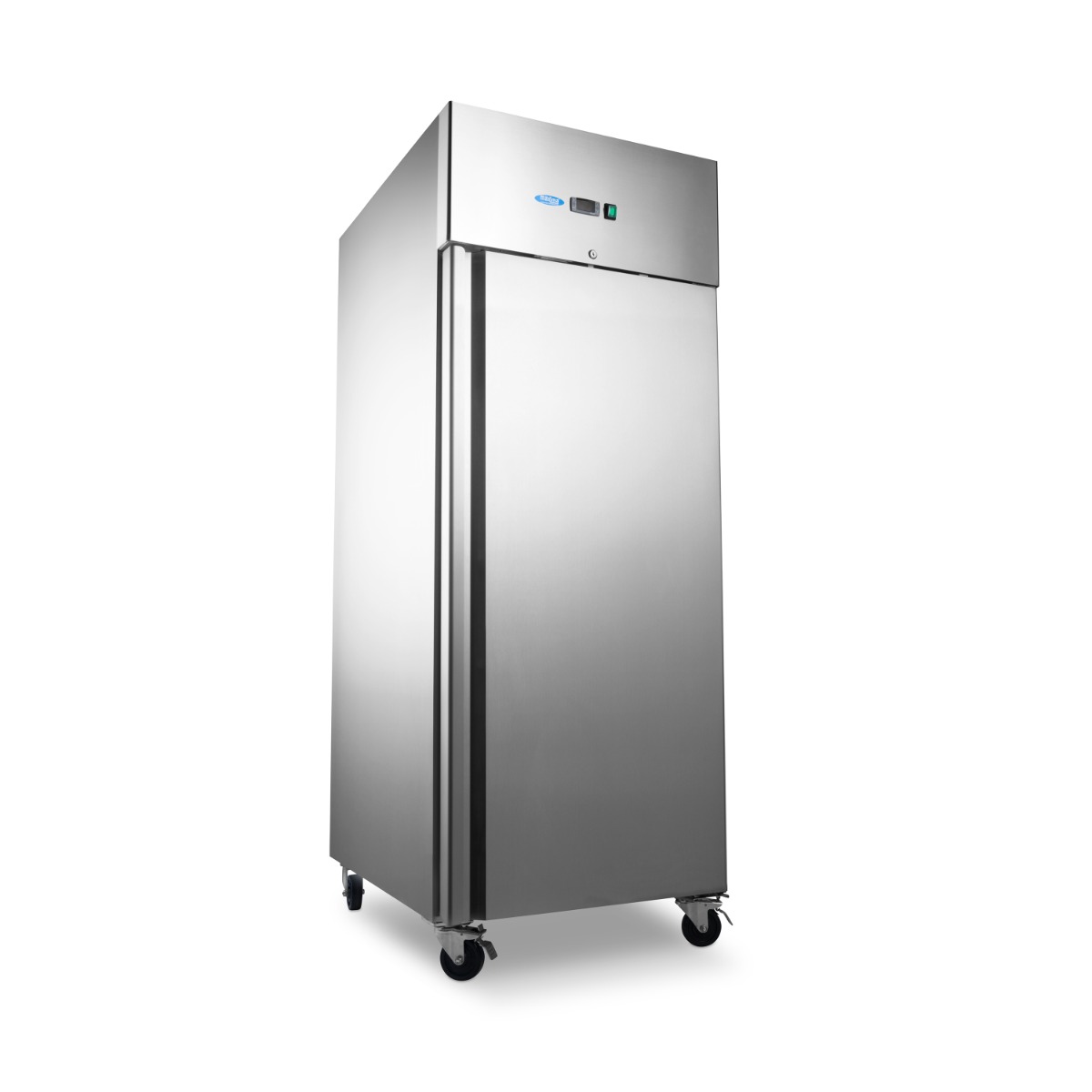 Ez a nagy teljesítményű hűtőszekrény ideálisan alkalmas pékségekben való használatra. A 800 literes bruttó kapacitással rengeteg terméket tarthat hűvösen. Az ajtó önzáró és antibakteriális gumitömítéssel rendelkezik. Ebben a hűtőszekrényben akár 10 állítható magasságú polcot is elhelyezhet. Alapfelszereltségként 10 db 60 x 40 cm-es polcokat tartó vezetőkészlettel rendelkezik. Van hely a térfogat megduplázására is, 60 x 80 cm-re. A polcokat külön is megrendelheti a webshopban. Ez a hűtőszekrény zárható, és két kulccsal szállítjuk. Ha a pékség egy másik részébe kell áthelyezni, ez lehetséges a négy keréknek köszönhetően, amelyek közül kettő fékkel rendelkezik. Az is könnyen látható, hogy mi van a hűtőszekrényben, mivel gazdaságos LED-világítással rendelkezik a belsejében.