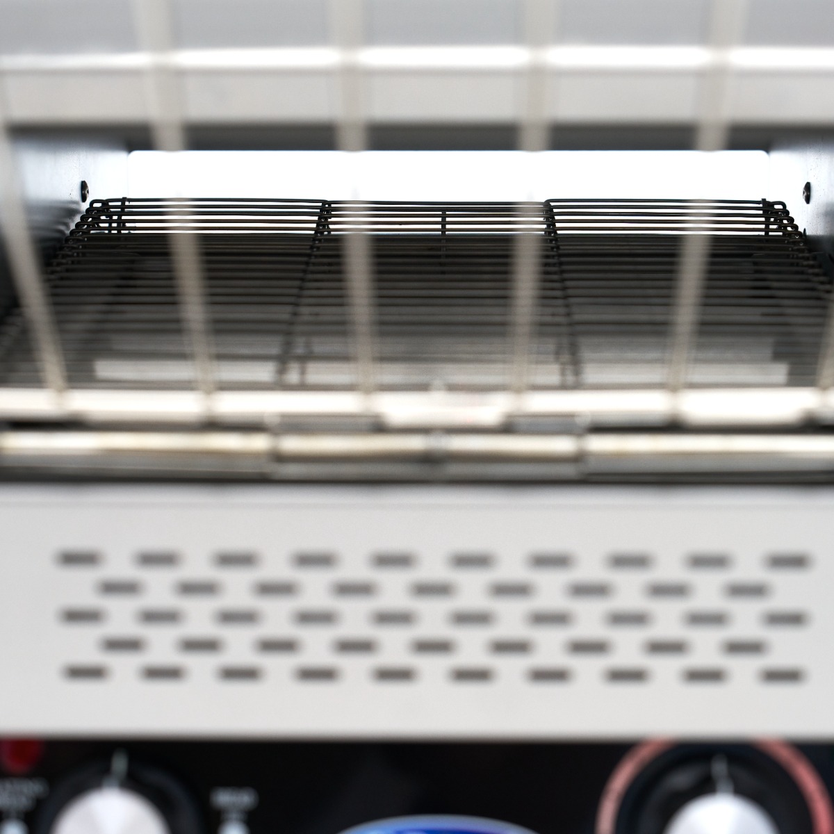 Az erős rozsdamentes acélból készült, beleértve a rácsot és a kimeneti tálcát is, ezt a kenyérpirítót úgy tervezték, hogy tartós legyen. Állítható haladási iránnyal rendelkezik, így kiválaszthatja, hogy a szalag előre vagy hátrafelé mozogjon, hogy megfeleljen a konyhai beállításoknak. A kivehető morzsatálca összegyűjti a morzsákat, így könnyen üríthető és tisztítható.