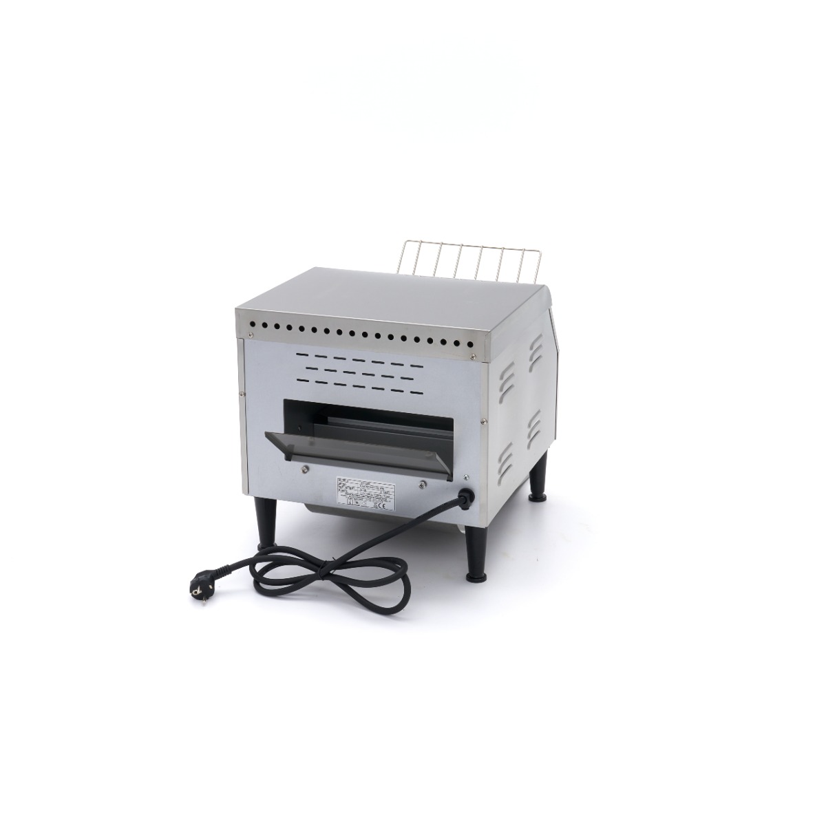 Ez a futószalagos kenyérpirító egy professzionális készülék, elegáns kialakítással és megbízható kapacitással. Óránként akár 300 szelet kenyeret is képes megpirítani, így ideális a forgalmas vendéglátóipari környezetekben. Pisztolyok és zsemlék pirítására is tökéletesen alkalmas. A kenyér egy futószalagon halad át a kenyérpirítón, és alul pirítva kerül ki.