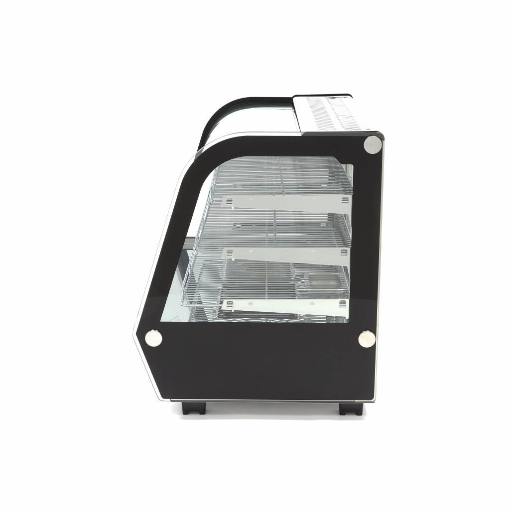 A rozsdamentes acélszerkezet krómozott kivitelű és hosszú élettartamú. A vitrin mind a négy oldalán üvegablakokkal rendelkezik. A nagy teljesítményű fűtőelem hatékony hőelosztást biztosít, így a termékek egyenletesen melegednek. A levegő párásításához egy speciális tartály is rendelkezésre áll. Az analóg gombbal 30 és 90ºC között bármilyen kívánt hőmérsékletet beállíthat. A hőmérséklet a melegített ételek kijelzőjének elülső részén jelenik meg. A visszajelző lámpának köszönhetően pontosan tudja, hogy a melegített ételek kijelzője a megfelelő hőmérsékleten van