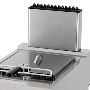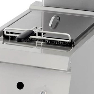 Ez a nagy teljesítményű fritőz gázzal (LPG vagy földgáz) működik, és 110 és 190ºC közötti hőmérsékletre állítható. Ergonomikus és higiénikus kialakítása miatt kiválóan használható készülék. A biztonság érdekében hőérzékelővel ellátott gázbiztonsági szelep van beépítve. Ezenkívül a fritőz gyújtólámpával van felszerelve. A fritőz a sütőolaj könnyű eltávolítása érdekében leeresztőcsappal is rendelkezik. A mélysütő alapfelszereltségként rozsdamentes acél fedővel és sütőkosárral rendelkezik.