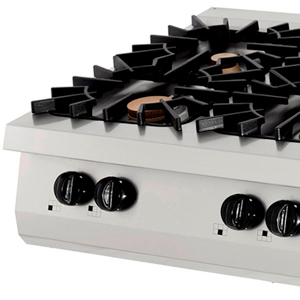 Ez a prémium tűzhely 6 égővel rendelkezik, és 90 cm mély főzősorhoz alkalmas. A ház rozsdamentes acélból készült, lekerekített sarkokkal, az edénytartók pedig öntöttvasból készültek. Ezek a szilárd matériák teszik ezt a tűzhelyet ideálisvá a professzionális konyhában történő intenzív napi használatra.